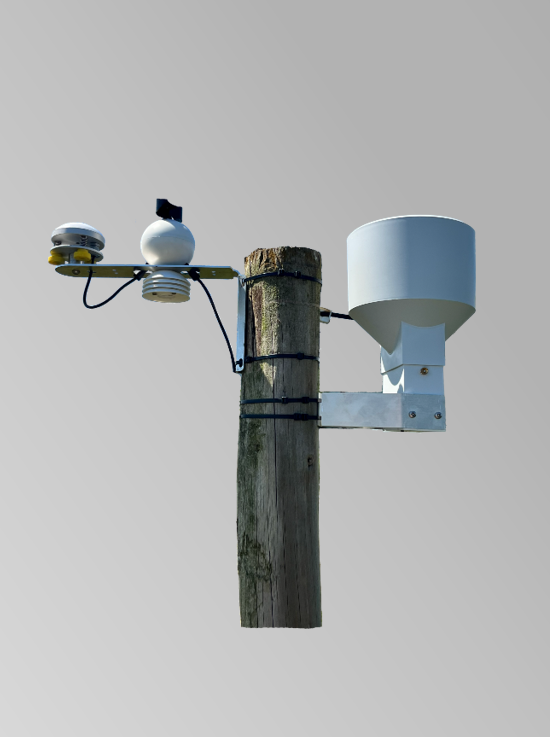 The IoMET comprises the weather station and a mounting bracket that can be attached to a mast.